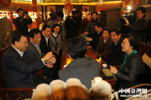 中国台湾网1月16日北京消息 在新春佳节即将到来之际,16日上午,全国政协副主席、台盟中央主席林文漪一行走访慰问了位于北京市东城区的著名台资企业“天福茗茶”,与企业代表座谈,并向他们致以新春的问候。