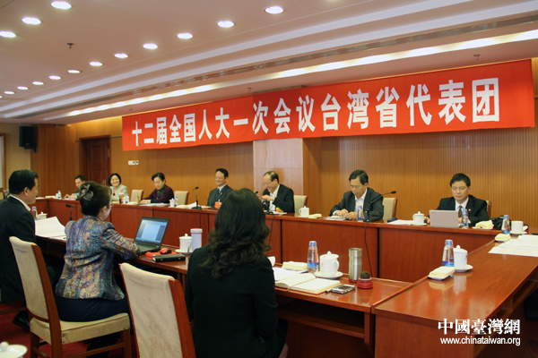 十二届全国人大一次会议台湾省代表团讨论政府工作报告。(中国台湾网 杨丽 摄)