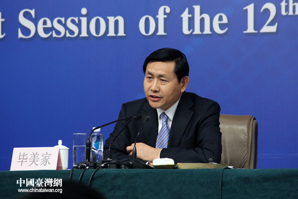 农业部总经济师、办公厅主任、新闻发言人毕美家11日下午在北京表示,台湾投资大陆农业呈现两个非常鲜明的特点,未来,农业部将加强三方面工作以深入推进两岸农业合作。(中国台湾网 杨丽 摄)
