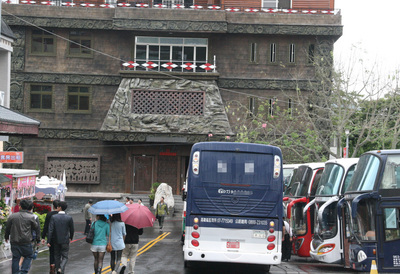 台湾开放大陆游客后,景点业者说,大部分未与旅行社绑约的店家受惠有限。图为日月潭地区专门做陆客团生意的大型艺品店,停车场常停满游览车。图片来自台湾媒体