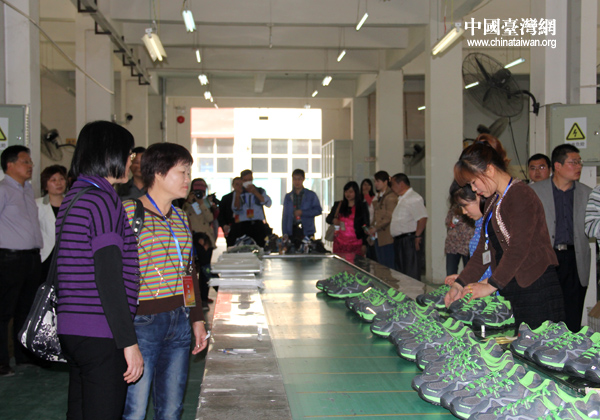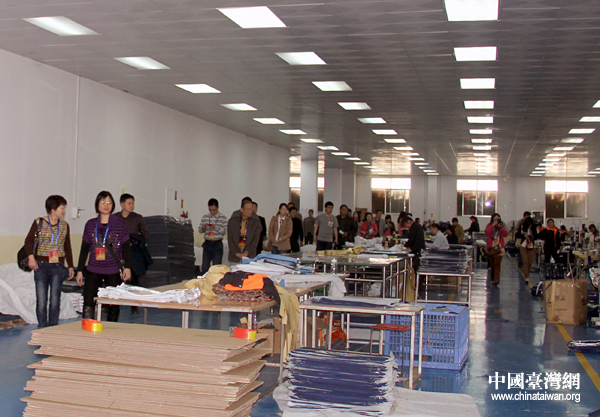 由来自台湾和大陆的十多家媒体组成的参访团一行走进河南信阳市唐河台商投资园区,实地参观考察了多家台企在中原地区投资发展的情况。图为记者们参观台企生产车间。(中国台湾网 普燕 摄)