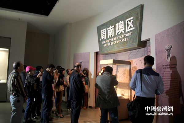 4月14日,由两岸媒体记者组成的参访团一行到河南信阳市参观采访。图为参访团参观信阳市博物馆。(中国台湾网 普燕摄)
