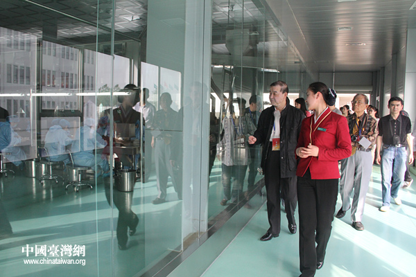 两岸媒体记者参访团参观信阳市文新茶叶有限公司,了解信阳毛尖茶的制作过程。(中国台湾网 普燕摄)