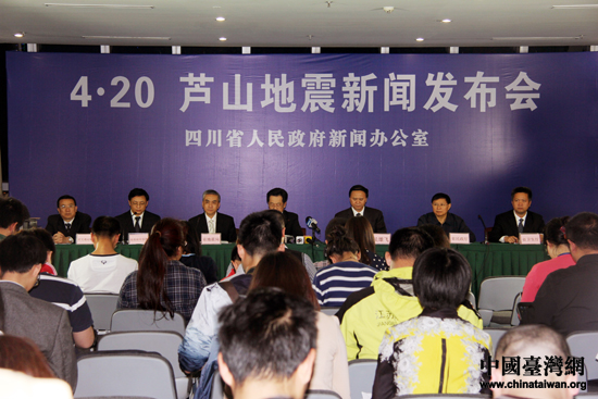 4月20日晚四川省人民政府新闻办公室举行“4.20芦山地震(第二次)新闻发布会”(中国台湾网发)