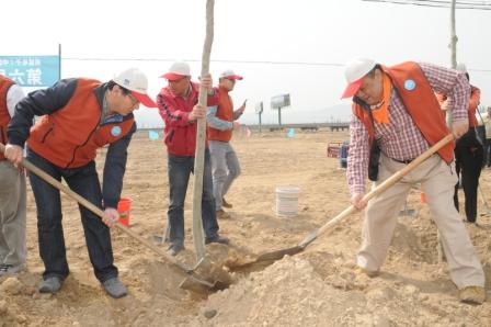 中国台湾网4月26日北京消息 台企威盛集团第六届公益植树活动今(26)日在河北省怀来县百里葡萄长廊西官路畔举行。台盟中央、全国台企联、北京市台协、北京市台联以及张家口市和怀来县的相关领导与威盛集团副总裁、中国区行政长徐涛先生以及威盛的几十名员工一起,在晴空丽日下栽种百余株防风树苗。