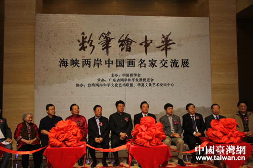 中国台湾网5月4日北京消息 4日上午,以“同研和谐笔墨,共绘锦绣中华”为主题的“彩笔绘中华”海峡两岸中国画名家交流展在中国美术馆开幕。
