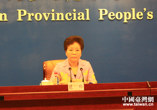 第五届海峡论坛组委会办公室副主任陈玲介绍论坛筹备情况并回答记者提问。(中国台湾网 李瑞艳 摄)