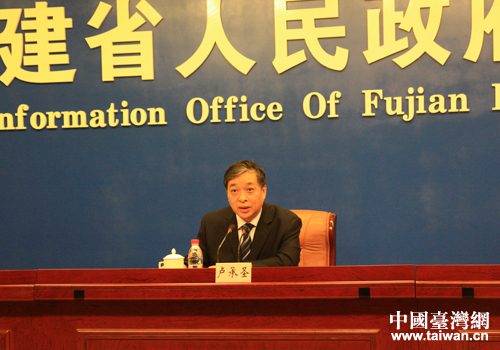 福建省政府新闻办主任卢承圣主持发布会。(中国台湾网 李瑞艳 摄)