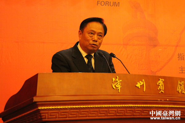 全国台联党组书记梁国扬在论坛现场发表致辞。(中国台湾网 孟雅诗 摄)