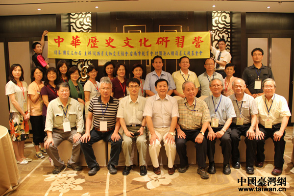 两岸首次以汉唐盛世为主题的中华历史文化研习营在陕西举行。图为参加研习营的全部成员合影。(中国台湾网 王文英 摄)