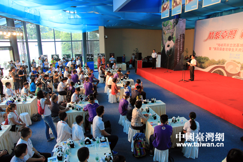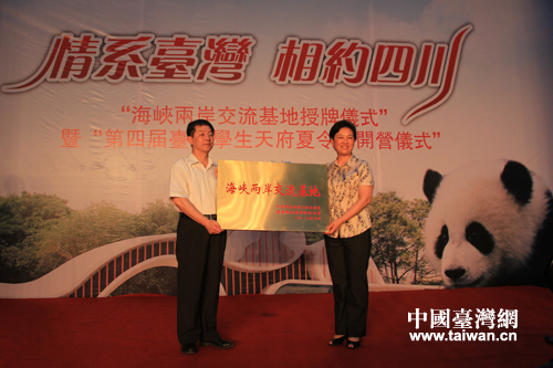 中国台湾网8月8日成都消息 今日上午,“海峡两岸交流基地”授牌仪式在成都大熊猫繁育基地正式举行。中央台办、国台办副主任叶克冬,四川省委副书记柯尊平,四川省人民政府副省长黄彦蓉等出席。包括参加第四届台湾学生天府夏令营活动的川台两地师生在内,共130余人参加了授牌仪式。