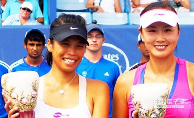 海峡组合谢淑薇、彭帅在辛辛那提网赛摘下女双冠军。图片来源:台湾《中国时报》