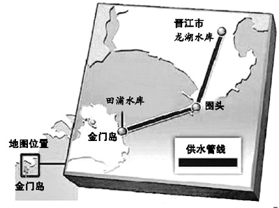 根据初步方案,向金门供水工程计划从泉州晋江市龙湖取水,通过海底管道送到金门岛的田埔水库。