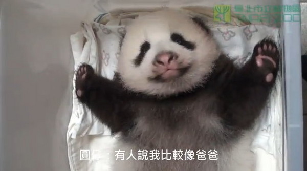 园方说,圆仔双眼已睁开一段时间,也渐渐习惯生活周遭事物,虽然对焦不太准,但醒着时会东看看西看看,有活力地挥舞四肢,但动着动着又会睡着。现在圆仔鼻子还是肉色的,嘴巴四周长出黑色毛发,像是长了胡子或喝了巧克力牛奶忘记擦嘴巴,看起来很搞笑,等再过些日子,“圆仔”的鼻子会跟爸爸妈妈一样变成黑色了。(中国台湾网 朱炼)
