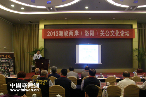 中国台湾网9月26日洛阳消息 9月25日下午,2013中国洛阳关林国际朝圣大典重要活动之一——2013海峡两岸(洛阳)关公文化论坛在河南洛阳市举行。洛阳市副市长张世敏应邀出席。
