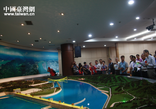 两岸新媒体采访团参观三峡工程展览馆,了解三峡工程建设模型和运行情况。(中国台湾网 段雯婷 摄)
