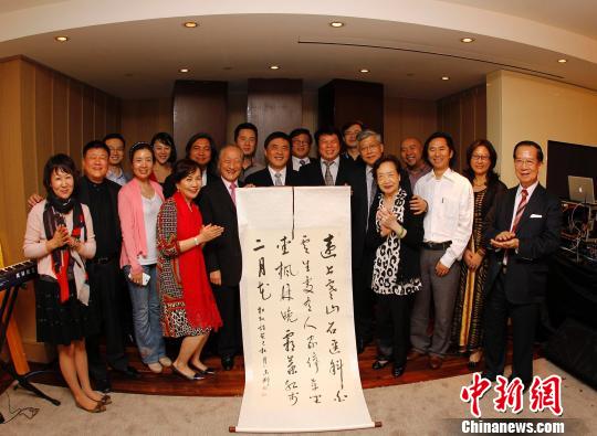 覃志刚的艺术作品受到台湾社会各界人士的广泛赞誉,覃志刚向台湾新党主席、台北市两岸人民交流服务协会理事长郁慕明等赠送艺术作品。 宝胜 摄