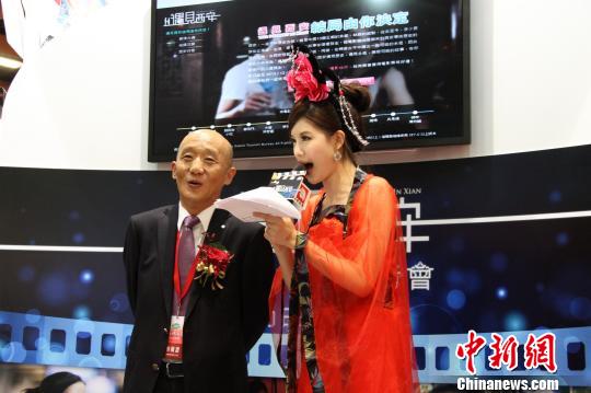 图为陕西省旅游局董汉青处长在《遇见西安》微电影首映典礼,与民众互动 记者 冽玮 摄