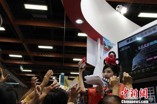 图为西安市旅游局国内旅游事务处长郝佩铭与民众互动。 记者 冽玮 摄