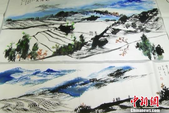 图为两岸和平文化艺术联盟会秘书长李沃源画作《元阳梯田》。 杨华伟 摄