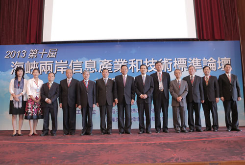第十届海峡两岸信息产业和技术标准论坛上嘉宾合影。(图片来源:工信部网站)