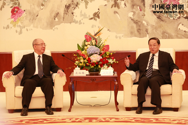 中共中央政治局常委、全国政协主席俞正声在广西南宁会见了中国国民党荣誉主席吴伯雄(中国台湾网 于斯文 摄)