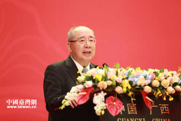 10月26日,中国国民党荣誉主席吴伯雄出席第九届两岸经贸文化论坛开幕式并致辞。(中国台湾网 于斯文 摄)