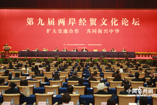 10月26日上午,以“扩大交流合作,共同振兴中华”为主题的第九届两岸经贸文化论坛在广西南宁开幕。(中国台湾网 于斯文 摄)