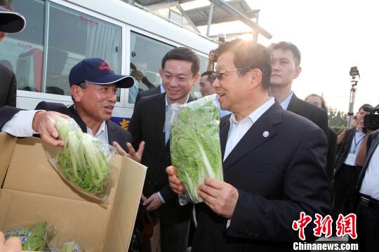 27日下午,履新后首次访台的海协会会长陈德铭一行参访屏东向阳农业生技公司。