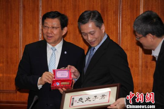 图为陈德铭在台中港务分公司获赠印章。 董会峰 摄