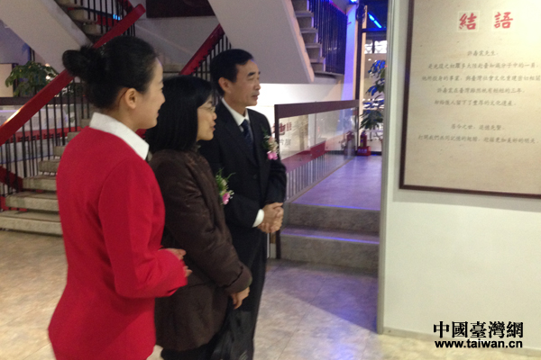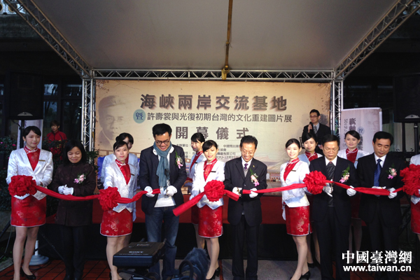 中国台湾网12月21日消息 2013年12月21日,应社团法人台南市文化协会邀请,由海峡两岸关系协会会刊—《两岸关系》杂志社与中国闽台缘博物馆共同主办的海峡两岸交流基地图片展暨许寿裳与光复初期台湾的文化重建图片展在台湾大学农陈馆隆重举行,《两岸关系》杂志社法人代表、主持工作副社长钟河林、中国闽台缘博物馆党委书记黄籴问、台北市文化局长刘维公、台北市议员王鸿薇、台湾大学中文系副主任李存智、中国文化大学政治系林崇义、社团法人台南市文化协会顾问张先鹏等嘉宾、媒体记者200余人出席开幕式。