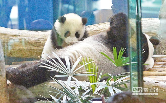 圆仔的处女秀,在展场内四处逛逛嗅嗅,展现十足活力,饿了就找圆圆喝奶,玩累了,直接趴在树上休息,让大家直呼超可爱