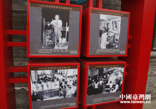 前门大街上展出老照片的照片墙。(中国台湾网 郭庆娜 摄)