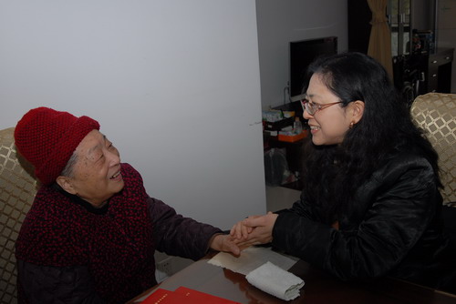 卢丽安会长(右一)与已故知名台胞李韶东夫人张增娟女士亲切话家常