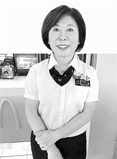 今年七十四岁的杨永平是麦当劳最年长的接待员。她说,从事服务业让她很开心,如不继续做下去会变老。