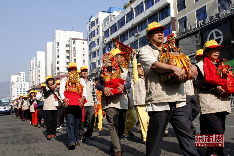 3月25日上午,晴空万里,阳光明媚,台湾宜兰南方澳南天宫陈正男董事长率420人妈祖进香团来莆田文峰天后宫进香朝圣。