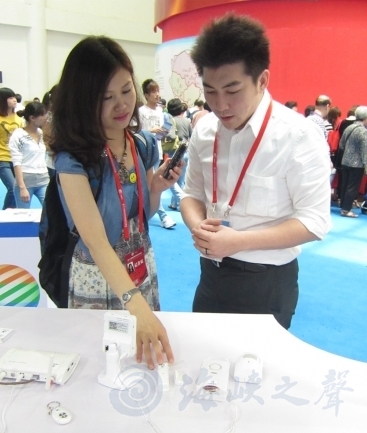 在第十六届海交会8号展馆海峡两岸机电交流专区中,“台湾信息消费专区”这一标语格外醒目。“我们公司本次参展突出‘物联网’这一主题,所谓物联网,就是结合前端的设备,通过网络的方式,让使用者在远端就可以直接搜寻到现场的画面。”展台的负责人之一王伟告诉记者,这次公司主要带来了六项服务内容,包含旅游云、安防云、健康云、智慧节能服务(iEN:intelligentEnergy Network Service)、电子钱包—多卡通服务以及智慧家庭(eHome)服务。其中,旅游云和安防云是该公司在本届展会上行销的重点。“这已不是我们公司第一次参加海交会,但每次都会有一些信息服务。”王伟说。