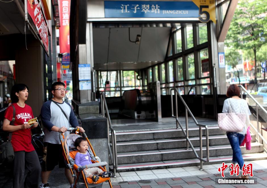 5月22日,台北捷运(地铁)江子翠站外往来的民众。21日下午行经此站的车厢内发生一男子持刀随机砍人事件后,台“警政署”增派80位保安警力到台北市捷运警察队,投入捷运系统维安,包括在车站月台和车厢内巡逻。