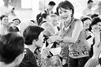 5月24日,台北市林安泰古厝民俗文物馆举办“吟诗飨宴”活动,邀请台湾老、中、青三代诗人联袂演出,共同迎接端午节的到来。图为台湾歌仔戏名家、台湾戏曲学院歌仔戏系教授黄香莲带领观众一同吟唱古诗文。吴景腾摄(新华社发)