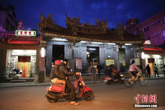 台湾寺庙林立,信徒众多。图为夜幕下的淡水福佑宫。中新社发 赵隽 摄