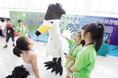 中華鳳頭燕鷗,全世界不到50隻的數量使其成為稀少的極危物種。8月10日,在福州第二屆海峽青年節上,兩岸志願者攜手開展“尋找‘神話之鳥’中華鳳頭燕鷗”活動。新華社記者 姜克紅攝