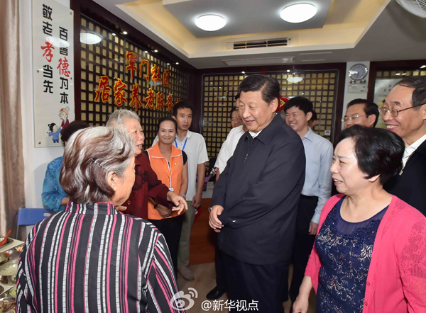 习近平来到福州鼓楼区军门社区居家养老服务站看望老人,祝老人们健康长寿。听说社区90岁以上老人有40多位、百岁老人有2位,他说,现在是老年社会,养老服务工作越来越重要。他叮嘱工作人员“好好干”。