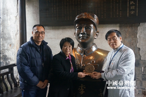 参访团成员与李友邦将军雕像合影。(中国台湾网发)