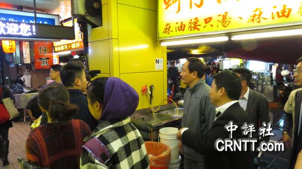 李建华沿着夜市商家逐一参访。(中评社 倪鸿祥摄)