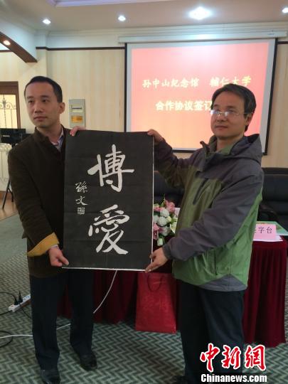 孙中山纪念馆向辅仁大学赠送了孙中山先生手书“博爱"二字的拓片。 申冉 摄