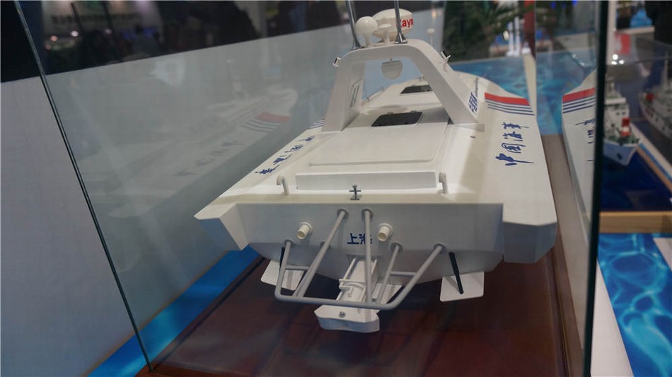 会展上出现的无人巡逻小艇模型(飞扬军事 同舟灭日 供图)