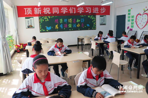 全南四小的学生们在图书室里认真阅读(中国台湾网 李徽 摄)