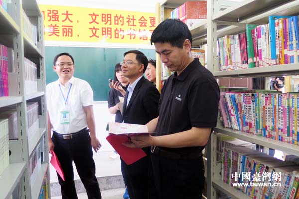 顶新公益基金会秘书长张建利查看图书室运营情况(中国台湾网 李徽 摄)
