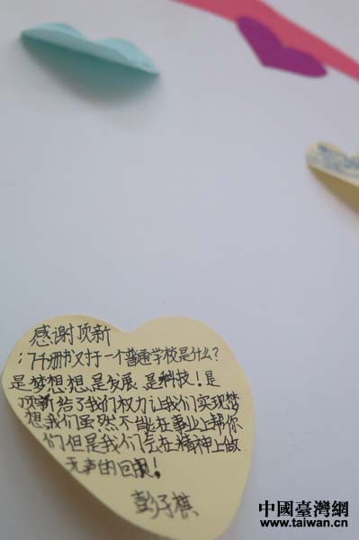同学们写给顶新集团的感言(中国台湾网 李徽 摄)