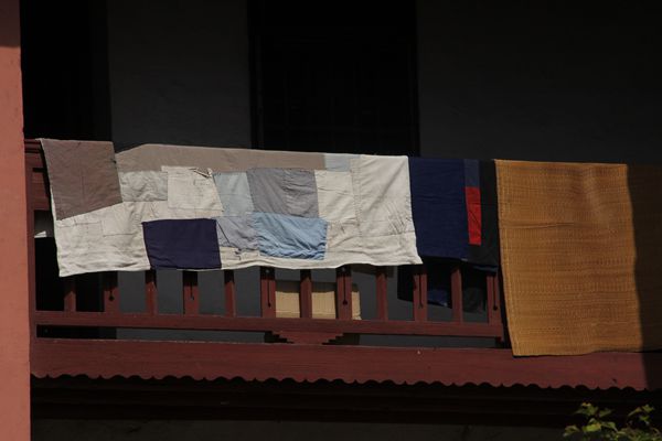 记者偶然发现的真如禅寺僧人晾晒的被单(中国台湾网记者 芜同 摄)